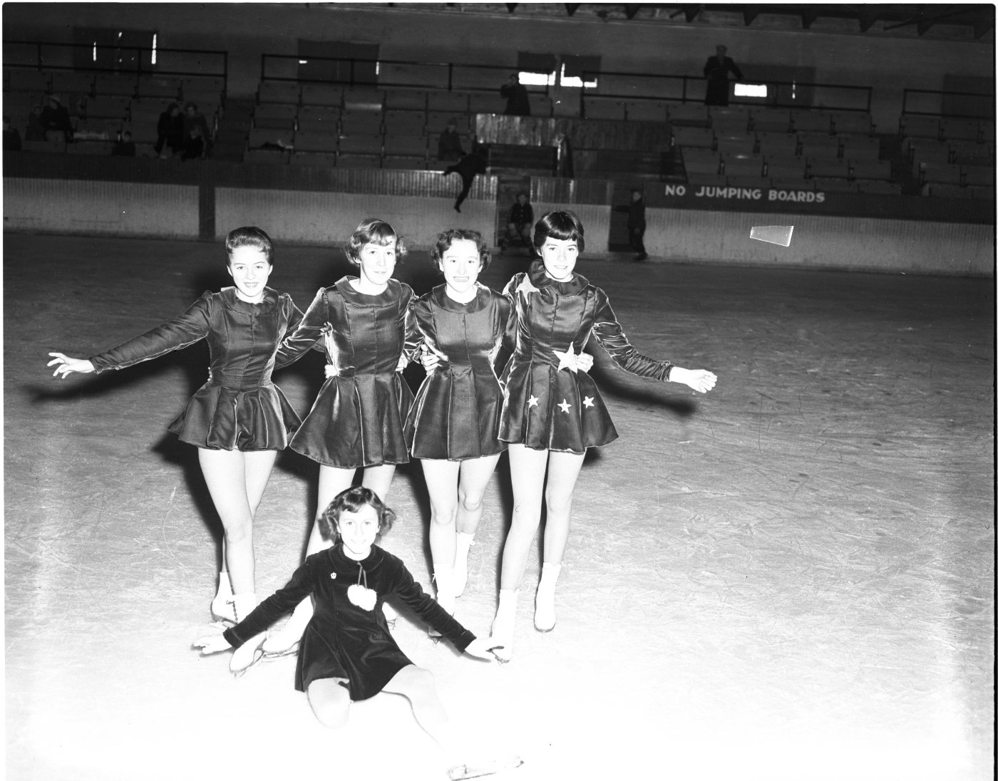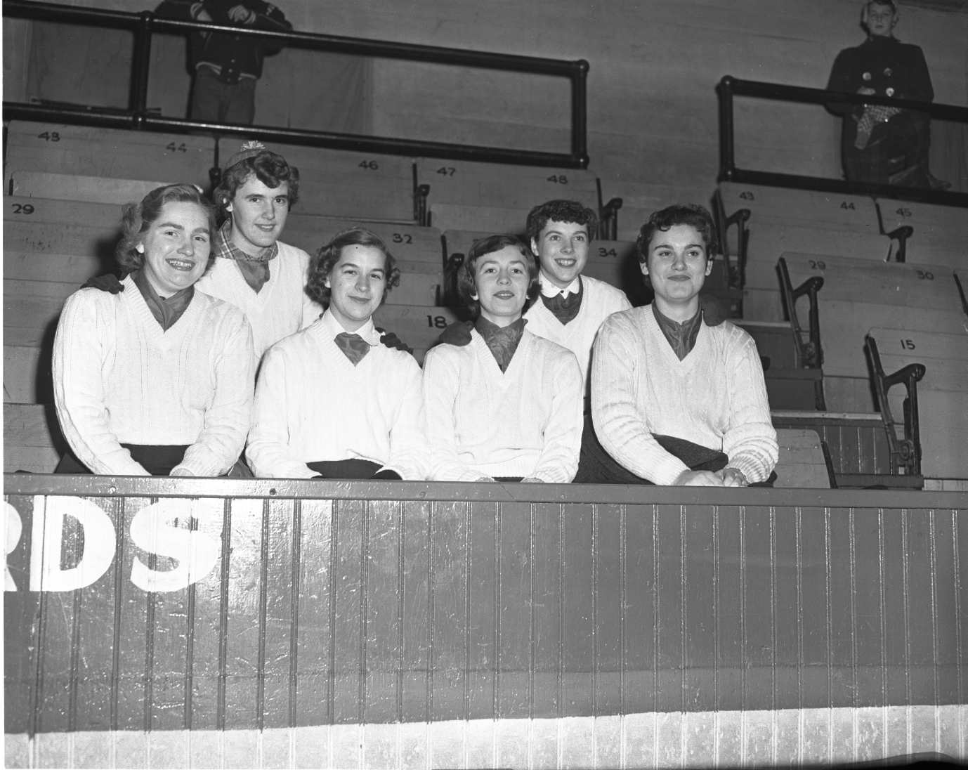 Midland Red Wing’s cheerleaders, Kathy Hall, Marj Powers, Pat Martin, Margaret Ann Moore, Lorna Edwards and Marion Lemieux.
