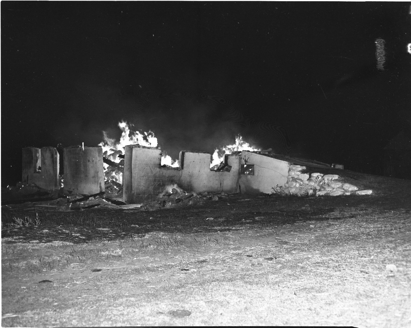 Victoria Harbour fire destroys two story frame house owned by Mr. & Mrs. Jack Dunlop, now residents of Orillia. Home had been empty all fall, crews from Midland and Waubaushene aided and were able to save the home of Fabian LaChapelle that was nearby.
