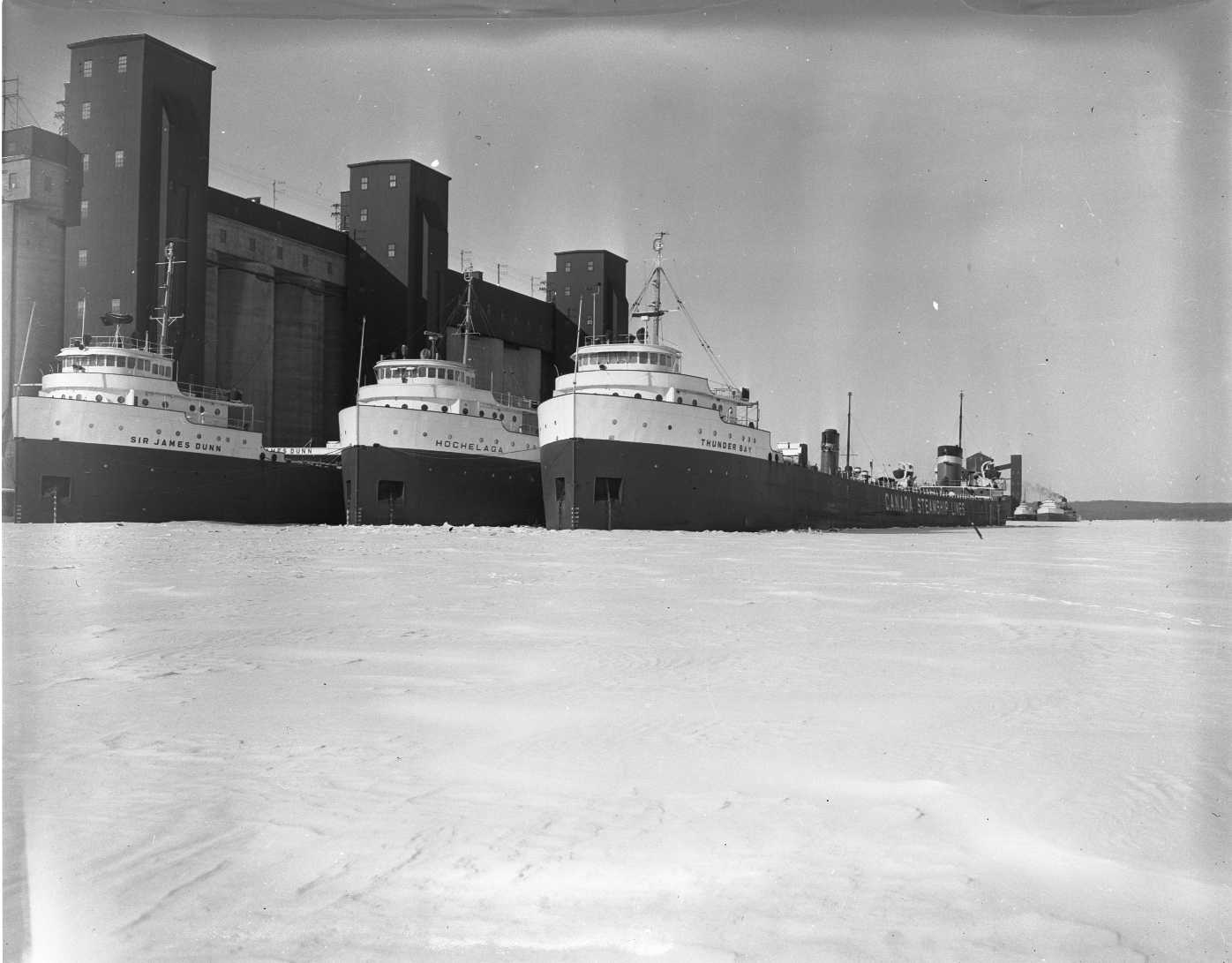 “Sleeping Giants” Three CSL bulk carriers, the Sir James Dunn, the Hochelaga and the Thunder Bay are wintering in front of the Tiffin Elevator filled with thousands of bushels of grain yet to be unloaded and behind them at the Aberdeen are the Algosteel (A.S. Glossbrenner, then Algogulf) and Gleneagles.