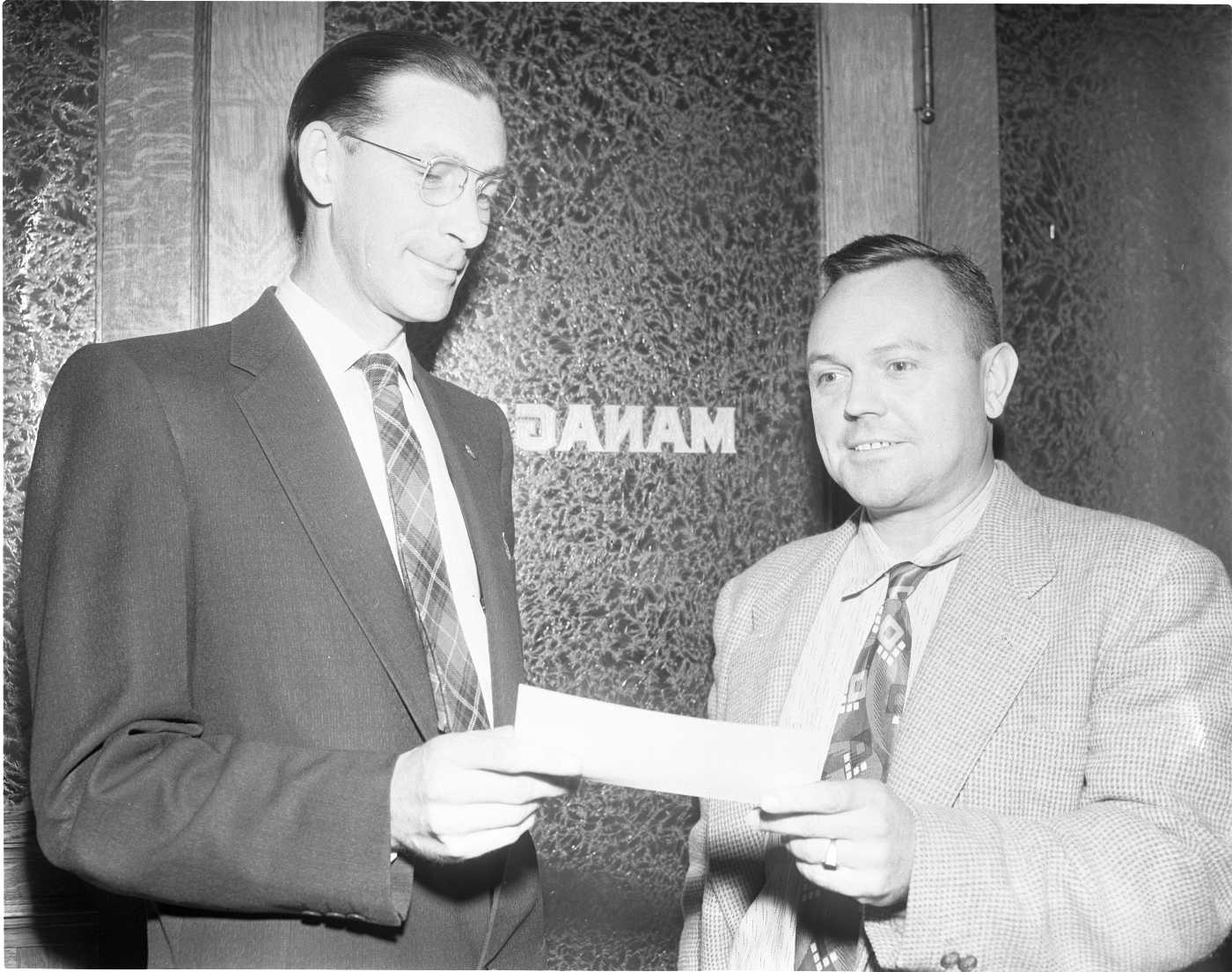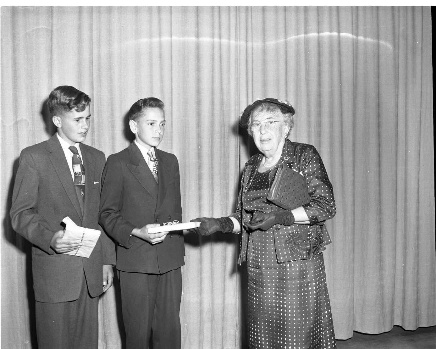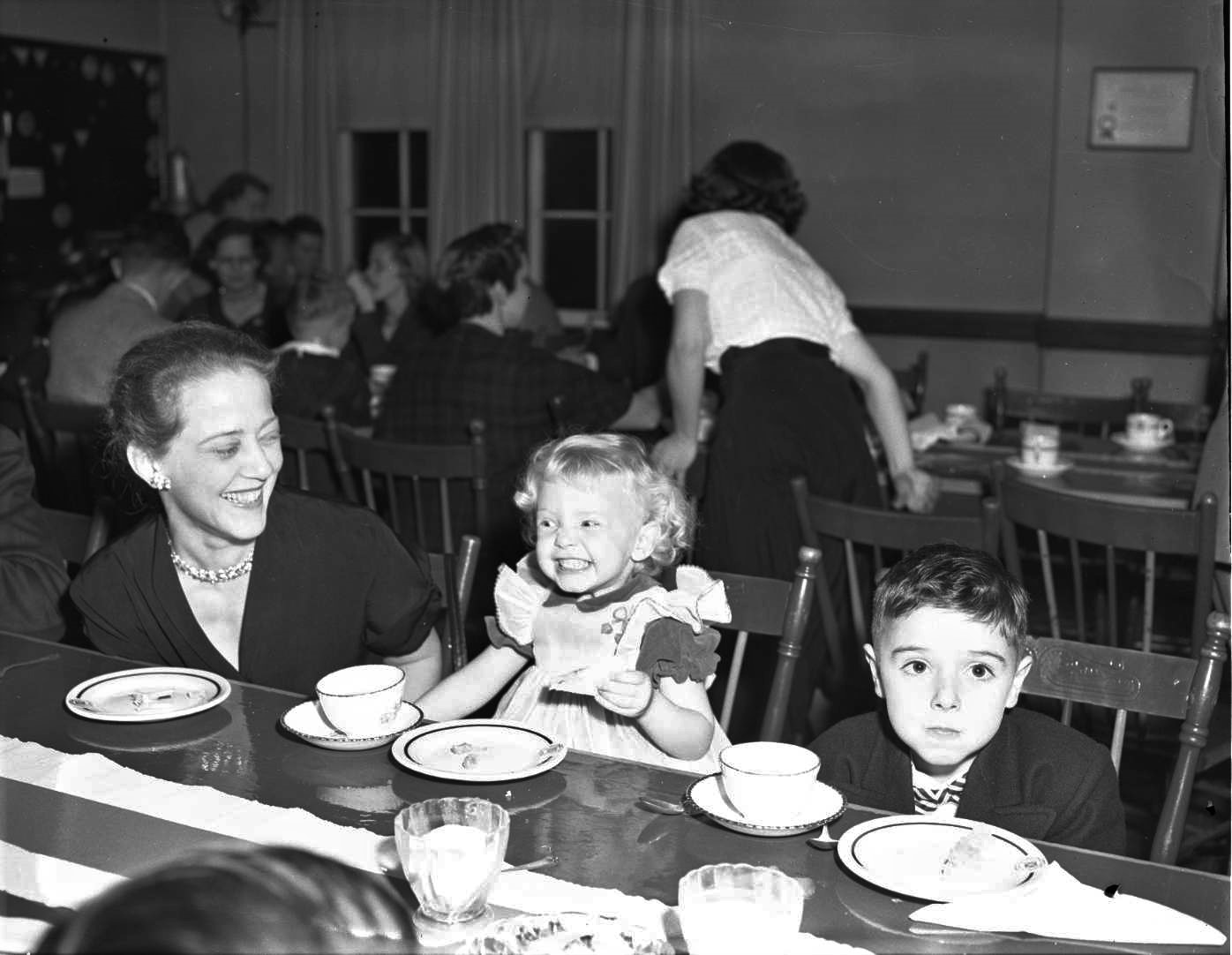 Dec 24th, 1956, at the Y’s Men’s Christmas party held at the Midland YMCA, Mrs. Cy “Sadie” Ney and daughter Geraldine, 2, and brother Ricky, 6.