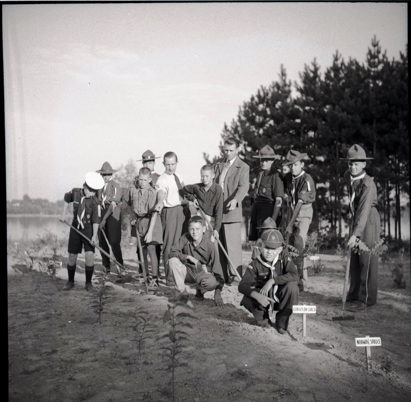 President of the Midland YMCA, James Playfair, (son of Norman Playfair the stepbrother of Midland industrialist James Playfair), is seen addressing nearly 100 new and youthful members of that organization at induction ceremonies in the “Y” last Wednesday night. Demonstrations on the floor followed the more solemn part of the program.