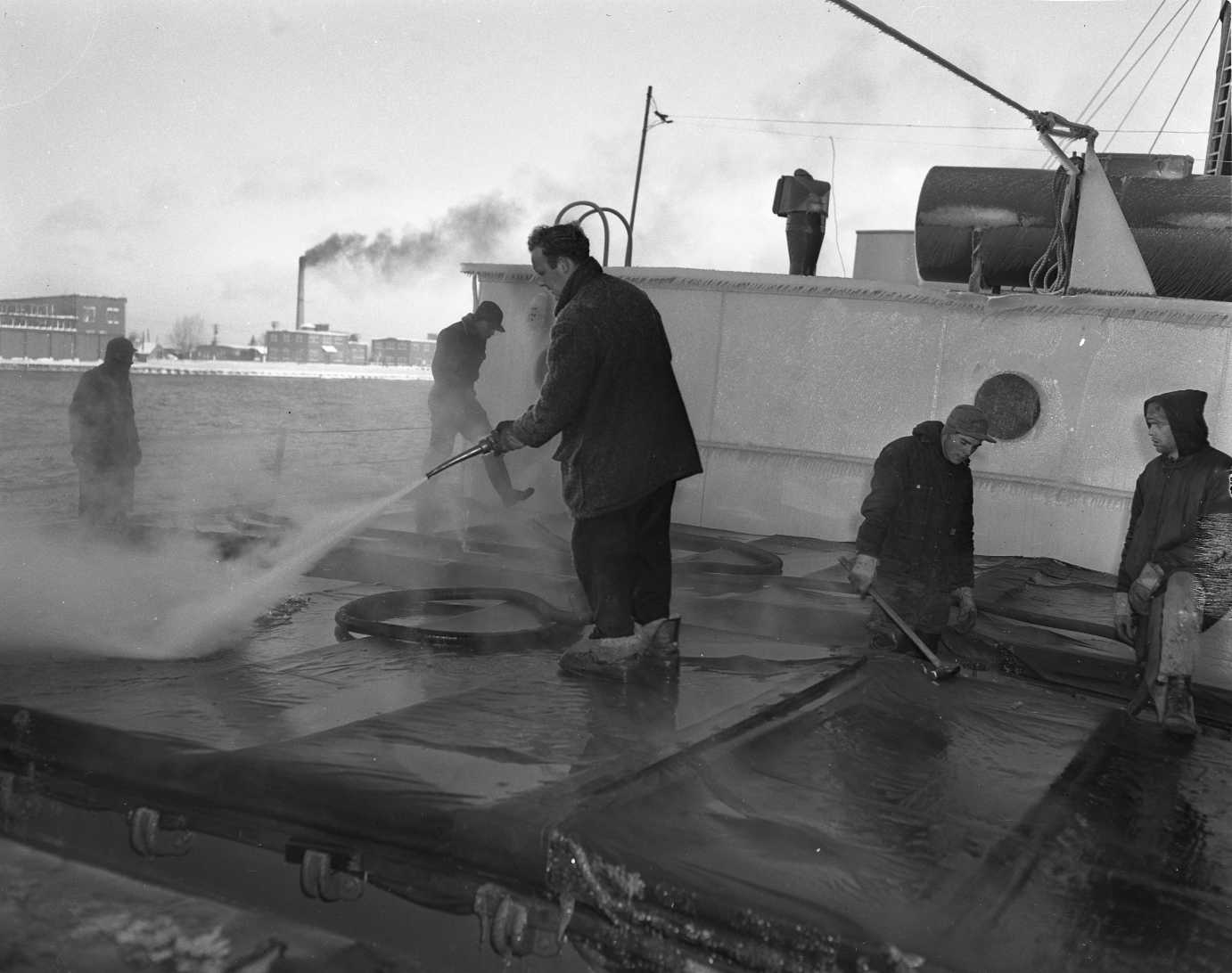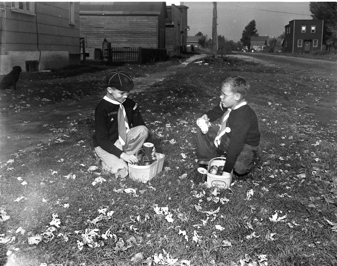 “Snowy” is a three month old Samoyed puppy that was found floating on a cake of ice between the ships at the CSL winter berth by one of the ship’s engineers. Leaving town he gave the pup to watchman & CSL employee J. W. Wallace. The three happy owners are, Lorne 4, Robert 8 and Mark 5, sons of Rev. G. R. Stanley of St. Mark’s Anglican Church. “Snowy” wandered away from home last week and Mr. Wallace is certain he spent at least one night on the ice. The Stanley’s, after futile searching, placed an ad in the Free Press and when the watchman called the paper to see if the dog had been reported missing the owners were reunited with their pet.