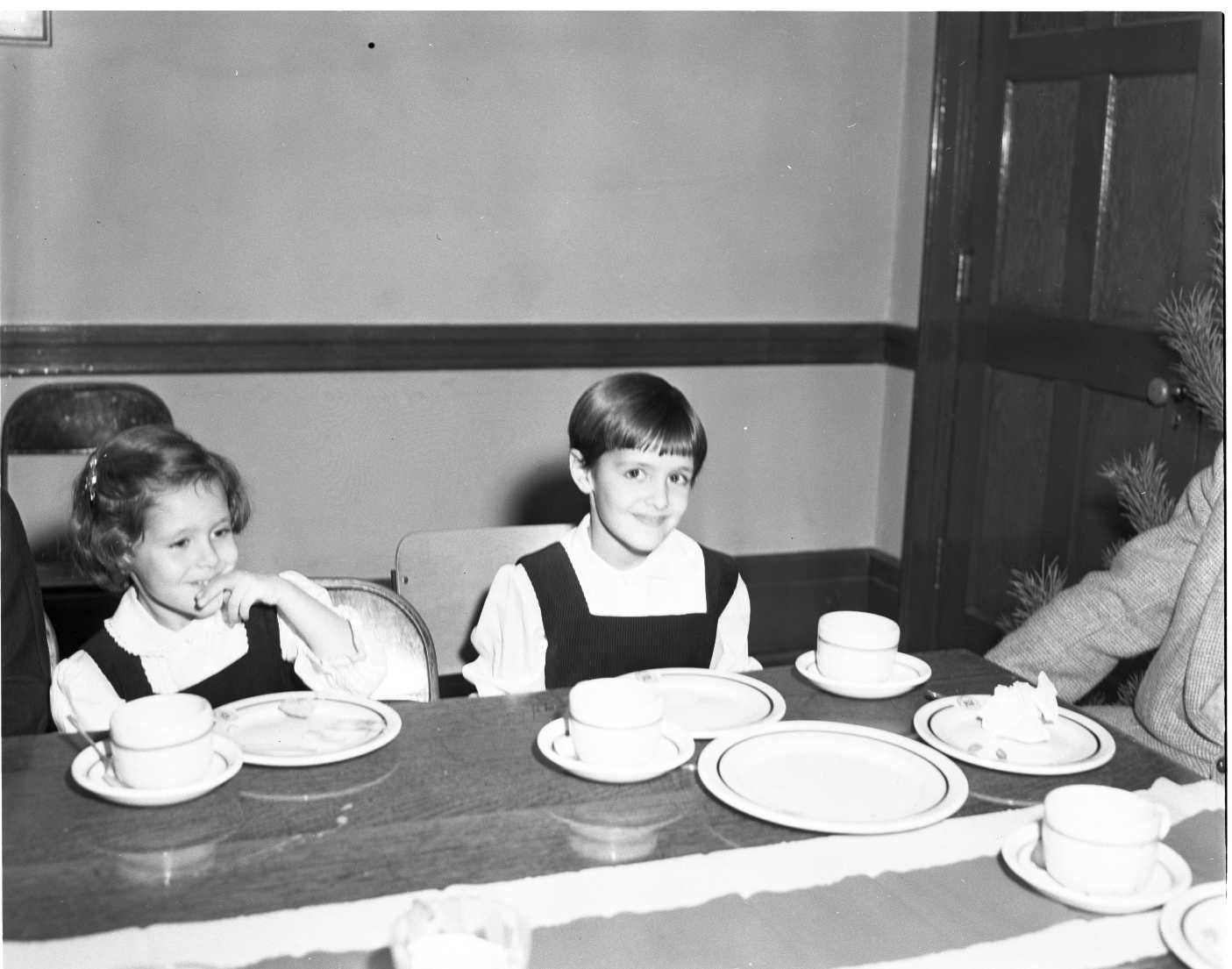Waiting for Santa Claus, at the Y’s Men’s Christmas party for member’s children Tuesday night, Mary Jane Walton, 4, and Wendy Walton, 7, can hardly wait.