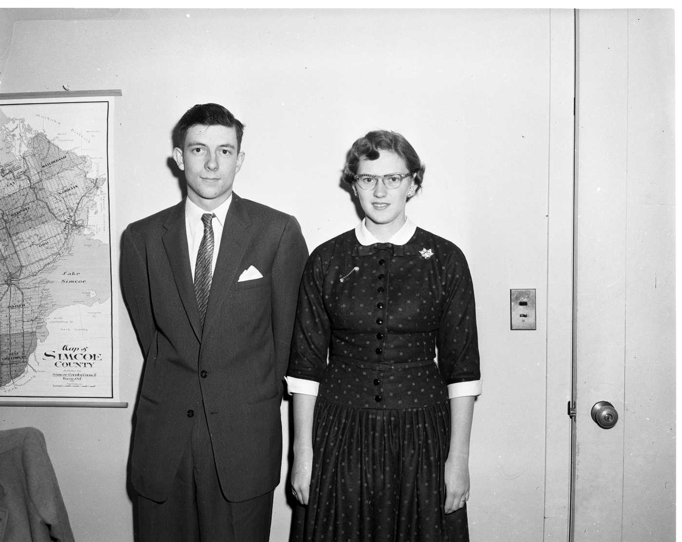 Mrs. Robert Carson, 68 Ottawa Street, gave birth to the first baby of 1956 at 3:45 A.M. January 4th, somewhat late for the New Year’s celebration. Teddy Carson will be a brother to Roberta Joy Carson aged two. Missing the first baby honours by a few hours were Mr. & Mrs. Lawrence Howe whose daughter was born at 9:15 AM December 31. Dr. Ike Weldon had the honour of delivering both the last baby born in St. Andrew’s in 1955 and the first in 1956. First baby in Penetang, a boy, was born January 3rd to Mrs. Robert Rowat of Elmvale.