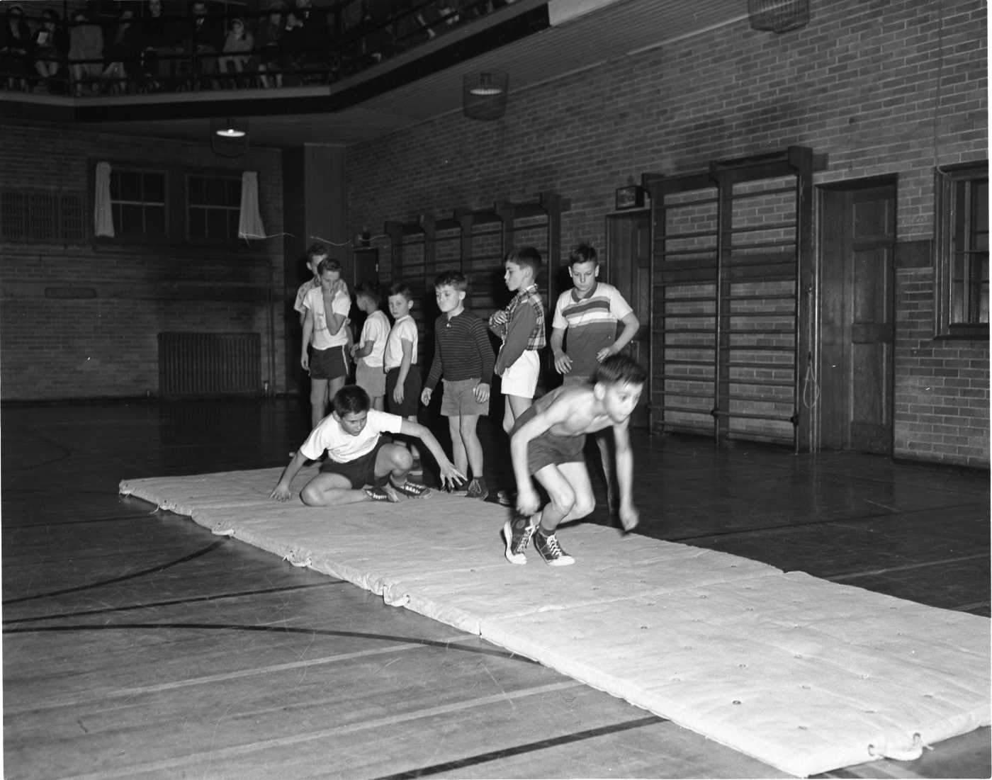 Group of first year members of the Midland YMCA demonstrate tumbling during a parents night at the “Y”.