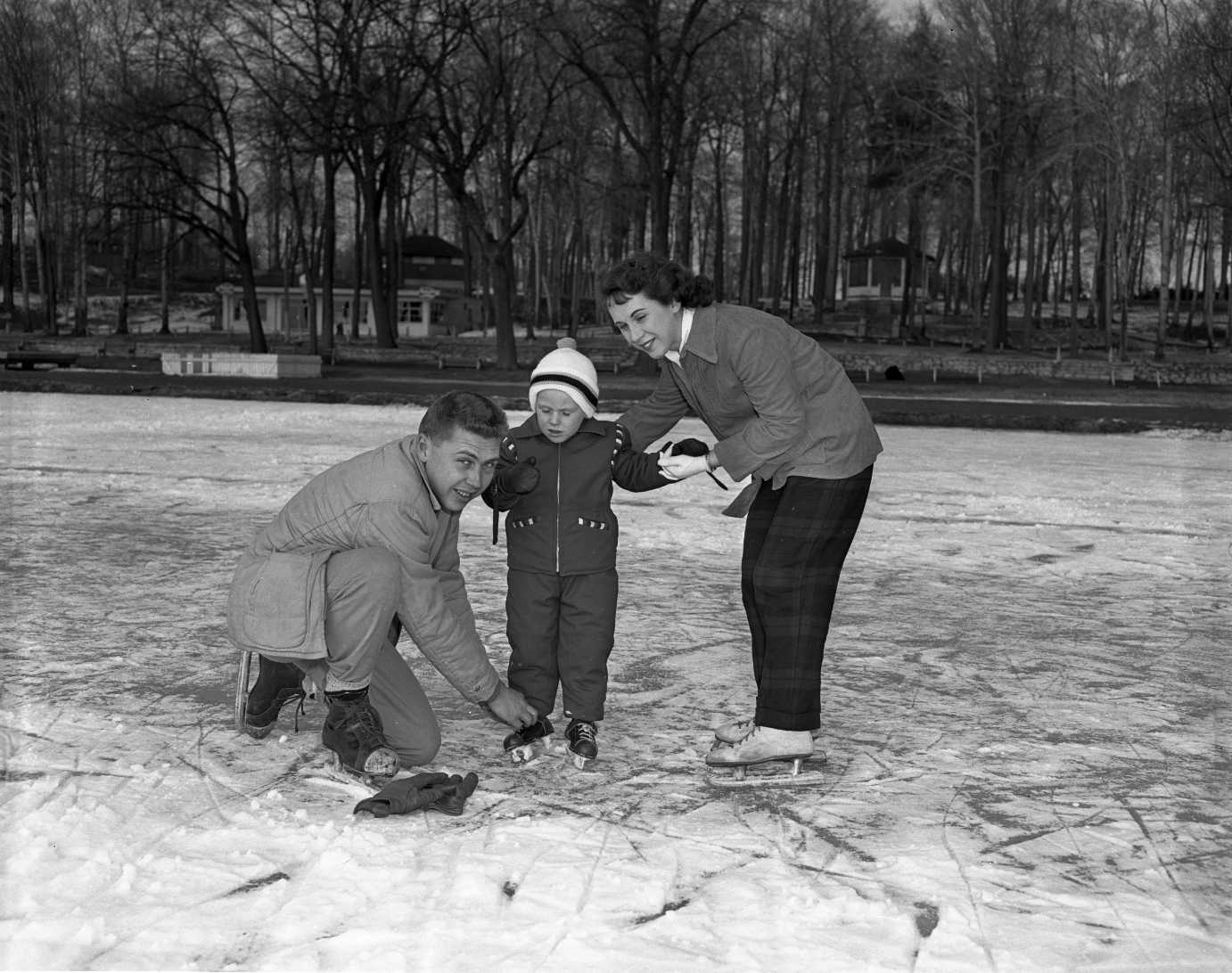 Mr. & Mrs. Eldon Brown and son Johnny, 3, are part of the many people who took advantage of the lack of snow on Boxing Day to enjoy the ice on Little Lake. Note the lack of snow in the background.