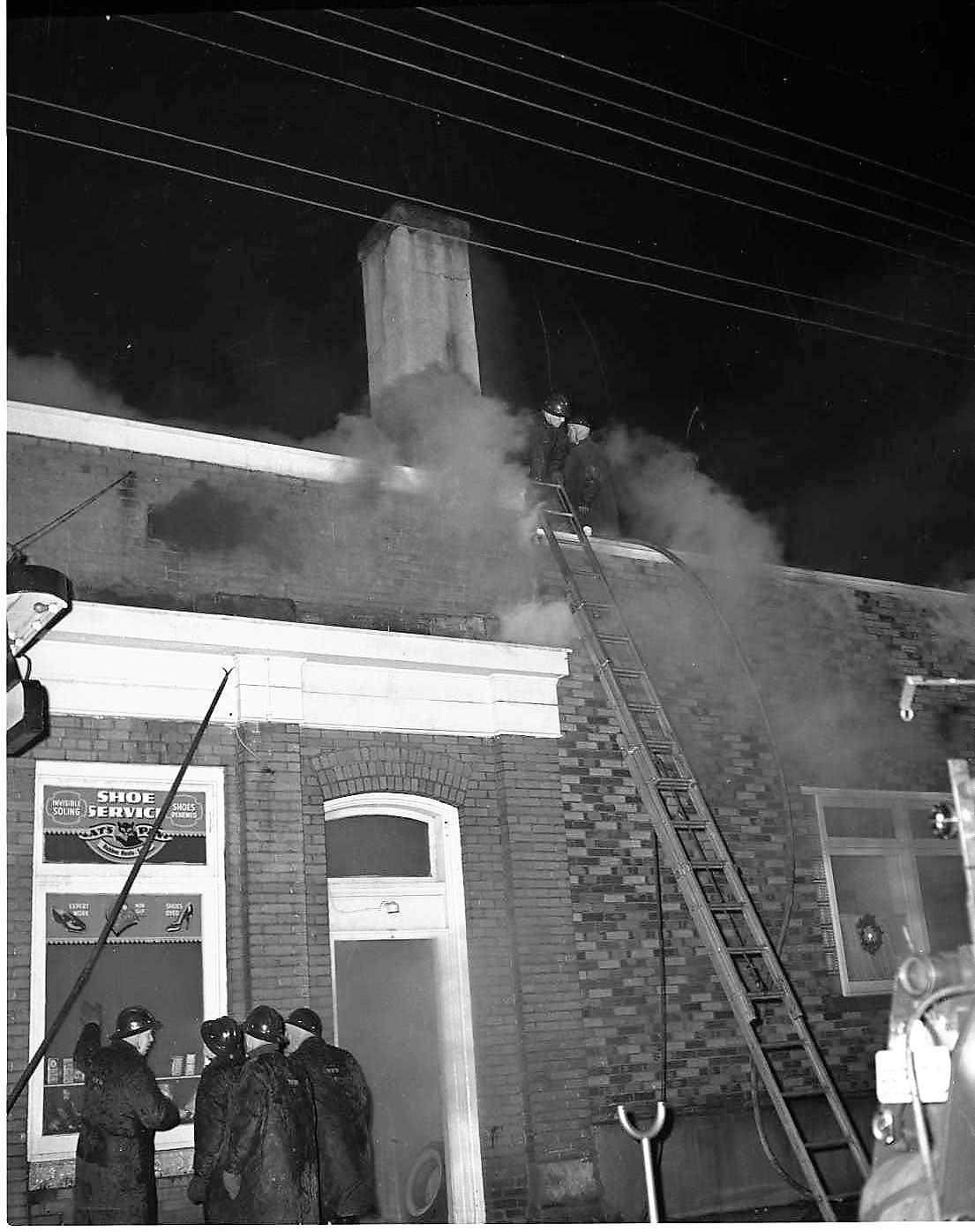 Estimate loss at $75,000.00 in stubborn fire in the Grise block. Chief Tippin said the blaze was the worst King Street fire since the Dudley block burned in 40 below zero weather in 1949. There were no soaring flames but the fire burned in the ceiling of the first floor in the middle of the building and took five hours to bring under control. Thick smoke kept firefighters from getting at the source of the blaze.
