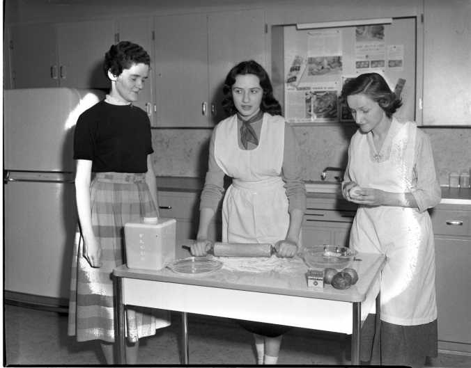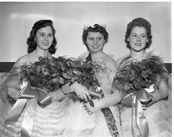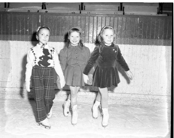 Three more tasty members of the Cake Land group who performed in the Lions Figure Skating Club revue this weekend. Miss Jelly Roll, Barbara Jean Parish centre is flanked by a pair of lemon chiffon cakes. Susan Harries left and Judy Fitzgerald right.