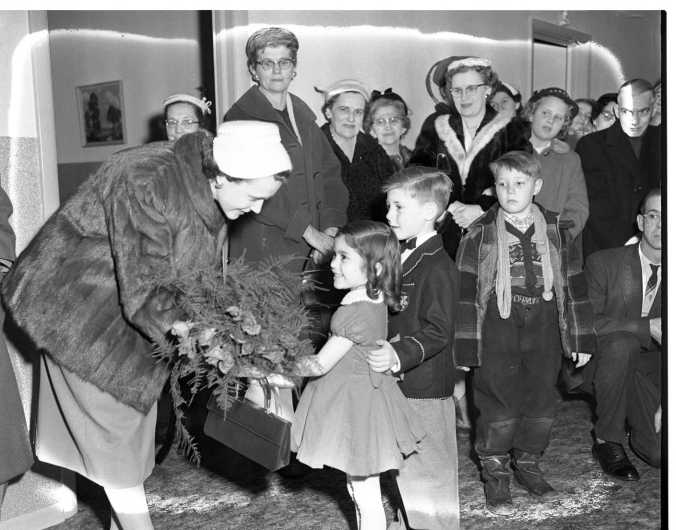 Where’s my prize mister? A study in expression at the Midland Arena Saturday as children line up to exchange their tokens, dropped from an airplane, for candy during the annual Y’s Men’s Club Easter egg hunt. [Most of my favourite photos in the Free Press collection are of children, this unknown little girl is another. I don’t believe it is about the candy, it is that strange man with the huge camera pointed right at her.]