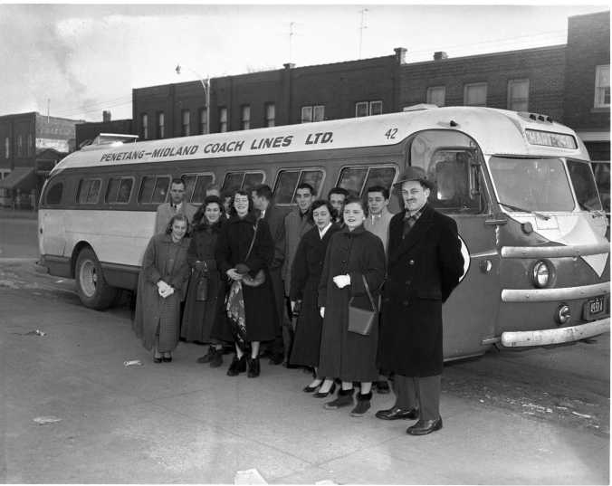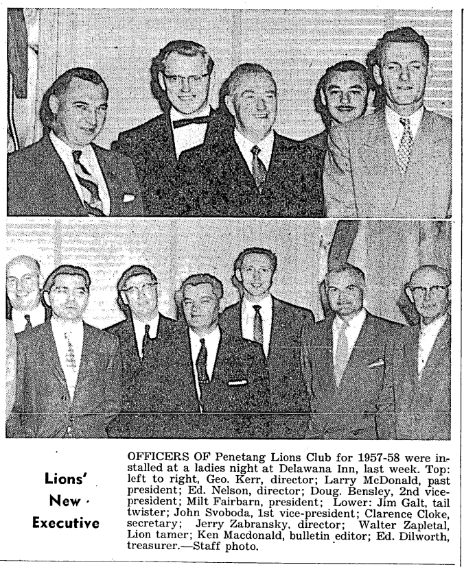 Just about the happiest bunch of fellows in Ontario at the moment are the members of Port McNicoll’s volunteer fire brigade. Some of them, with Chief Lloyd Cameron in front, are seen grouped around their brand new fire truck, which arrived Saturday. Still, others are seen on the old 1919-model engine purchased from Toronto Fire Department in 1950. Along with the new $17,500.00 truck, the brigade also has the latest type resuscitator.