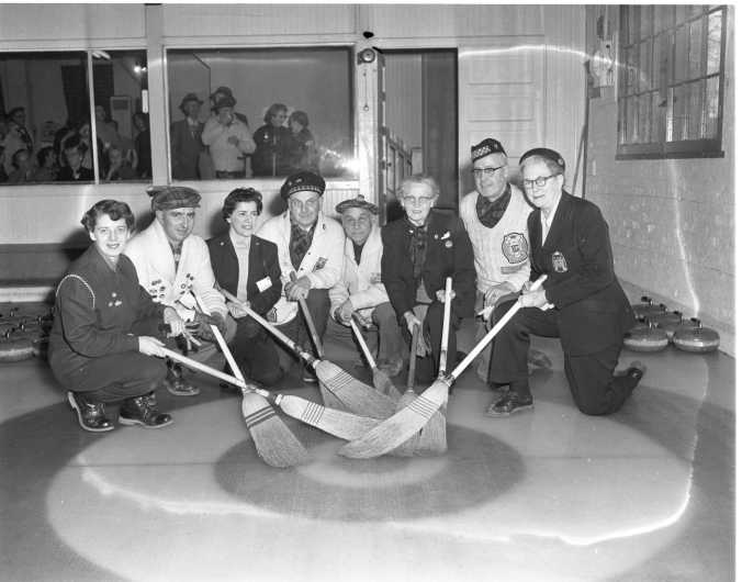 - The stones are stored away, the brooms stacked in the corner and the lights turned out on another season at Midland Curling Club. A big “do” Saturday night in which prizes for various competitions were presented, wound things up for 1956-57. It’s a cinch the ice couldn’t be used for curling again after a host of members enjoyed their annual end of the season skate on the smooth surface.