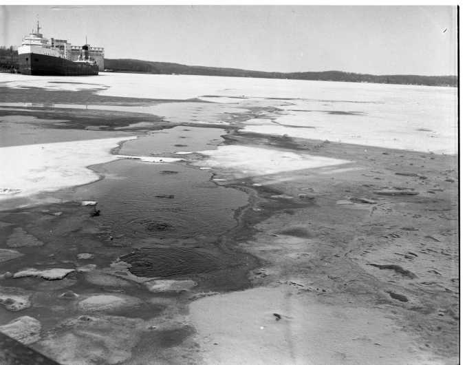 - The first ship to reach bay ports this season was the CSL steamship T. R. McLagan, which docked at the CPR elevator in Port McNicoll at 11.10 a.m. Monday after what her skipper termed “the worst spring trip I’ve ever seen in my 51 years”. Capt. Alex Wilson of Sarnia, commodore of the CSL fleet, predicted two more weeks will hardly make an impression on the heavy ice the McLagan battled from Port Arthur. His ship left the lakehead April 11 and with the help of no less than four icebreakers made Sault Ste. Marie Sunday. It is expected to take only 15 hours to unload the 650,000 bushels of wheat.
