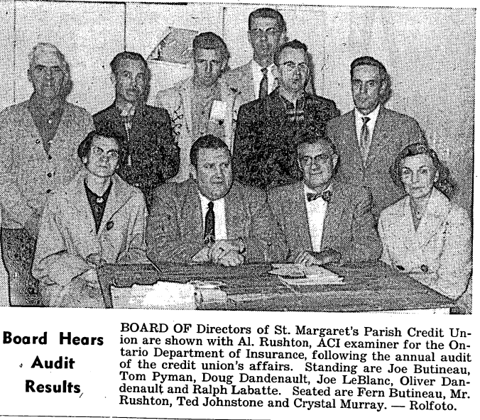 “Toujours elle était joyeuse.” That’s the way Mr. and Mrs. Phillip Laurin of 115 Fifth Street, Midland, feel about their 50 years of wedded life, having celebrated their golden wedding anniversary June 16. In spite of the trials of nearly a half century of farming, the depression years, two wars and raising 10 children, they still say “it was always happy”. If it was happy, it wasn’t always easy. Born on a Lafontaine farm, Philip started to work at 13. He had to stand on a box to harness the horses. A horse caused him trouble later on, too, when he was kicked in the leg and was out of work for nine months. He met Odianna, daughter of farmer Frank Robitaille, at a dance in Lafontaine. They were married by the then parish priest, Father Desroches, when Mr. Laurin was 25 and she was 18. They raised all their children in Lafontaine, where they themselves were born, and educated. The couple moved to Midland 13 years ago, when Mr. Laurin stopped farming. Their Fifth Street home is close to the church; they like their neighbours; there’s a good-sized vegetable garden. Which is quite enough, they feel, to keep them happy. They have three boys and seven girls living, and all are married. There are 66 grandchildren and one great-grandchild. The golden wedding anniversary was the first time all the children had been together at once since they’d grown up.