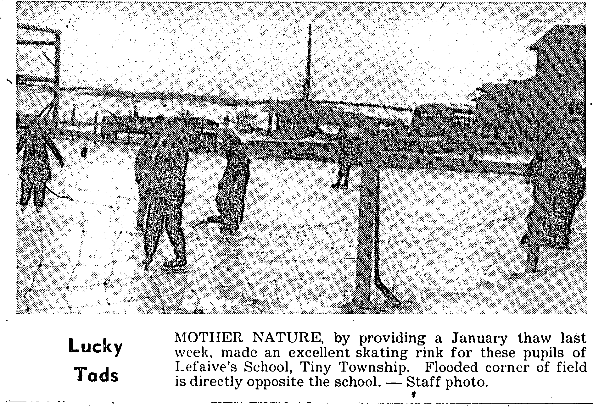 - Free Press Headline, Wednesday, April 14th; “Quartet on Spring Hunt 14 Year Old Youth Shot” A 14-year-old Victoria Harbour lad narrowly missed being instantly killed in the first hunting accident of the 1957 season, Monday afternoon. In St. Andrew’s Hospital, Midland, is Robert LaChappelle son of Mr. and Mrs. Fabian LaChappelle, Victoria Harbour. Robert was hit in the face by a bullet accidentally discharged from a .22 calibre rifle. The bullet struck the lad in the right cheek, finally lodging near his ear.