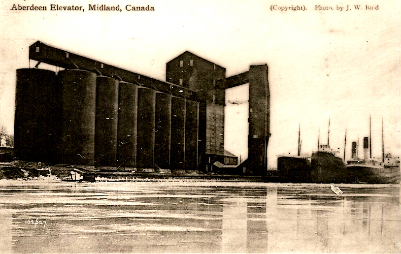Midland’s potential as a gateway for grain entering eastern Canada was seen as early as 1898. The Town House elevator was the first to be built by the Grand trunk Railway, in 1896, and was followed by The Aberdeen, Tiffin and Simcoe elevators. Grain coming from the Canadian west was taken by train to Thunder Bay. From there it was shipped to Midland by boat and unloaded into one of 4 elevators where it then entered eastern Canada by train or boat. 99.9% of the grain went by rail. The industry thrived until transport subsidies were lifted in 1991. Now only the Midland elevator, owned and operated by ADM Mills, survives.