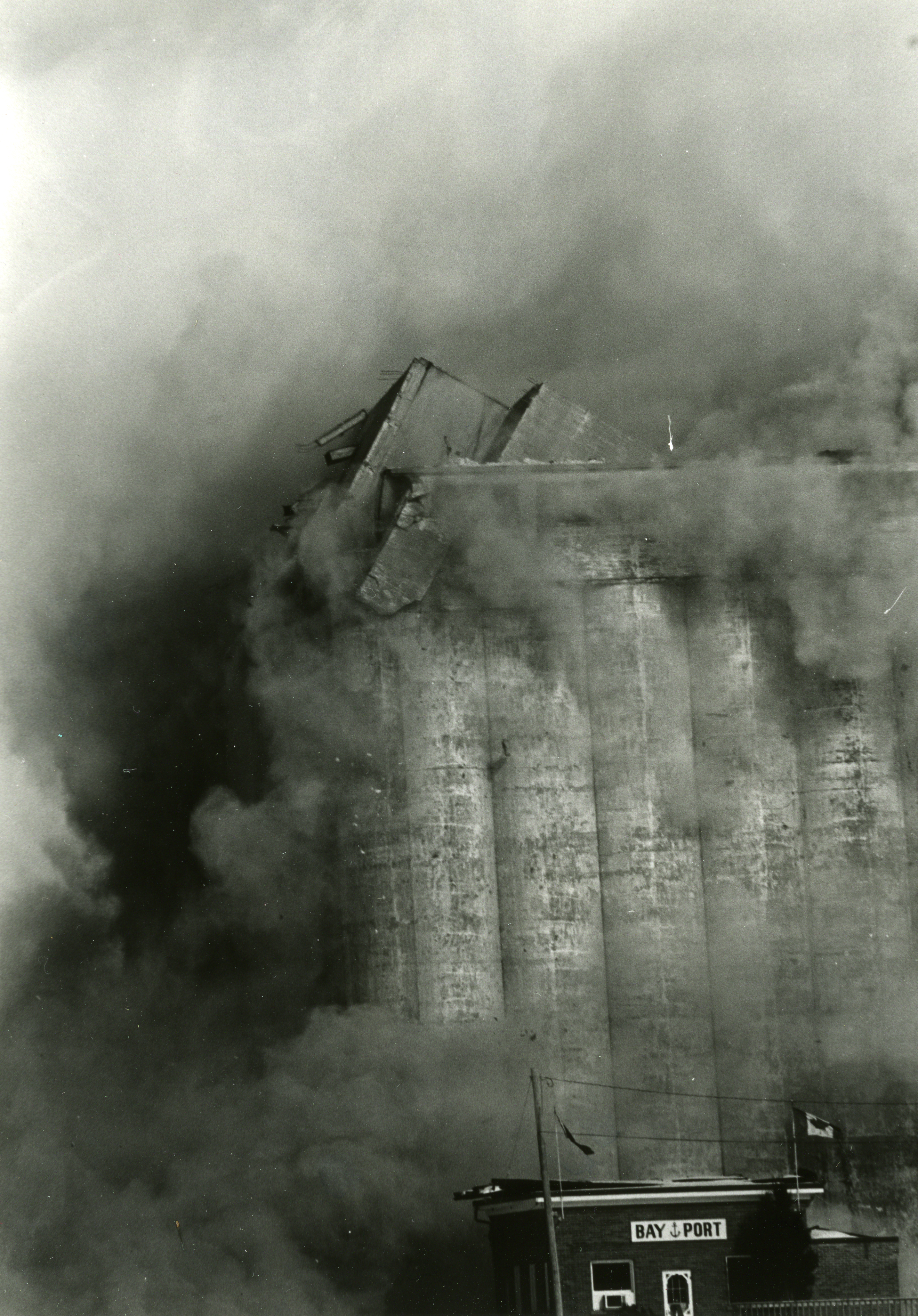 In this aerial view we can see all four Elevators in Midland. Tiffin Elevator in the foreground, Aberdeen further up the shore, the current Midland Elevator in the top left, and the Simcoe Elevator in the top-middle of the photo. Only the Midland Elevator remains.
