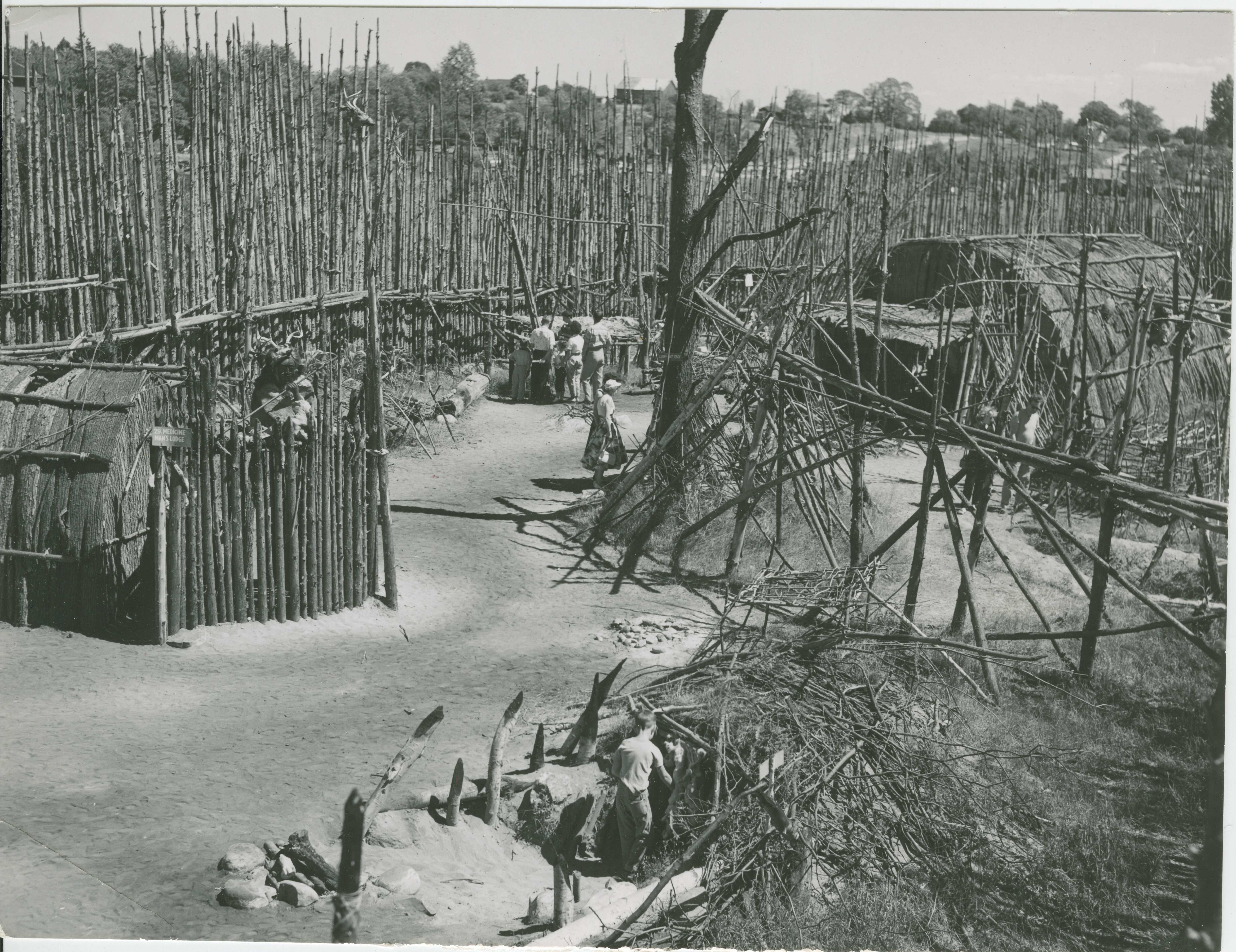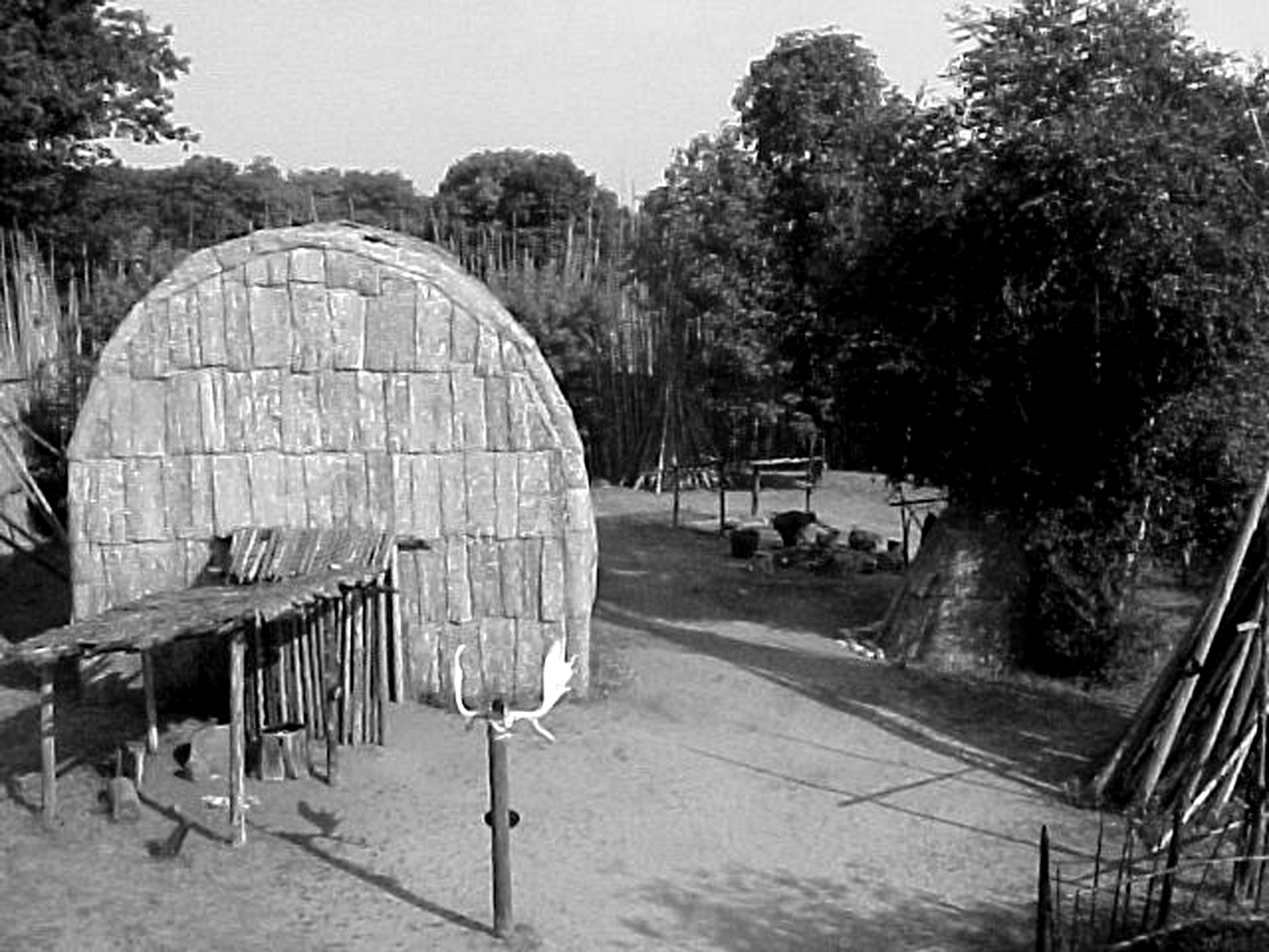 An early photo of the Wendat village as it was first constructed by the Y.M.C.A.