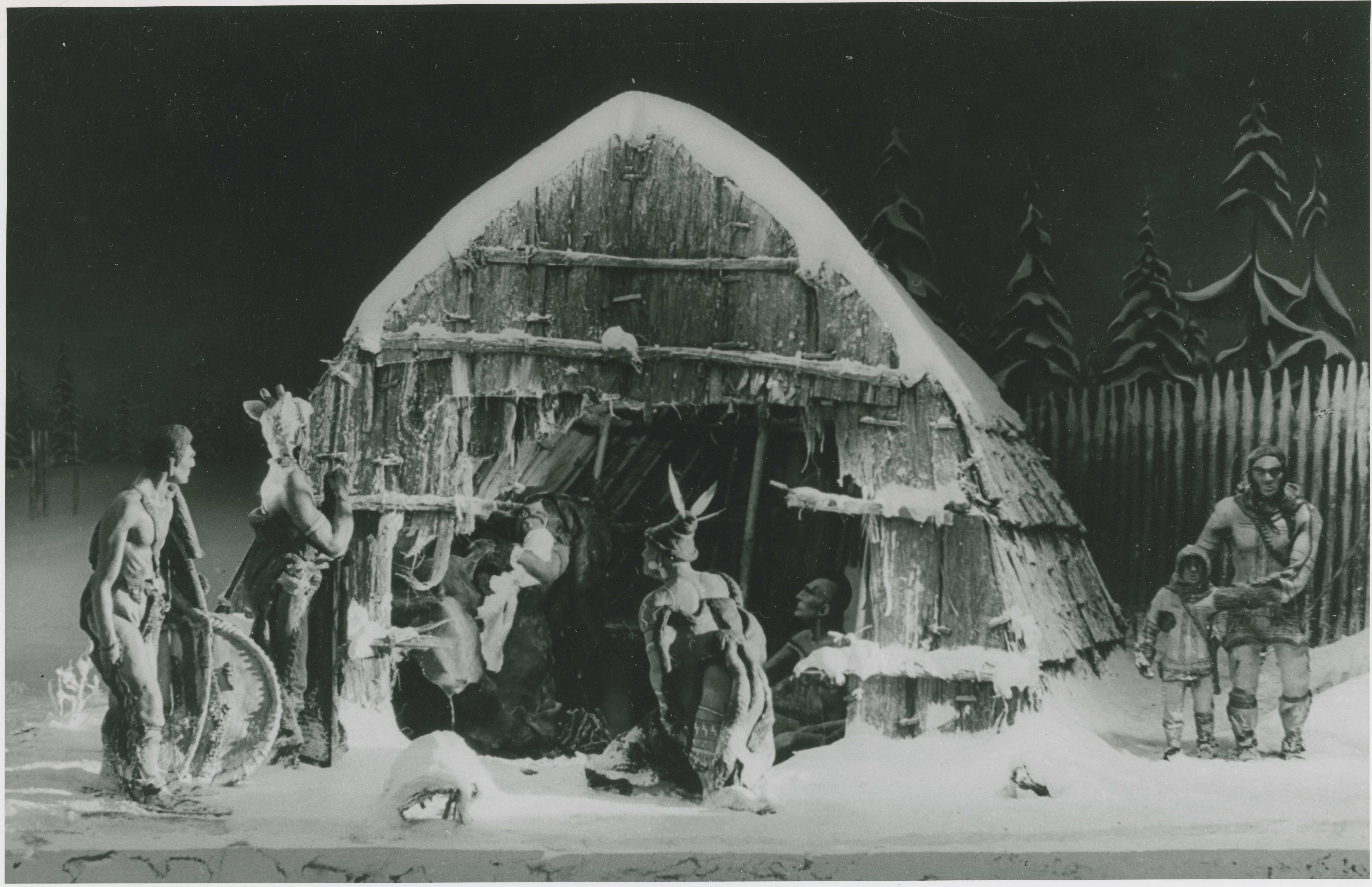 A diorama depicting the Huron Indian Carol, as told to the Hurons in 1640 by the Jesuits. The diorama came to the Huronia Museum from the National Museum of Canada.