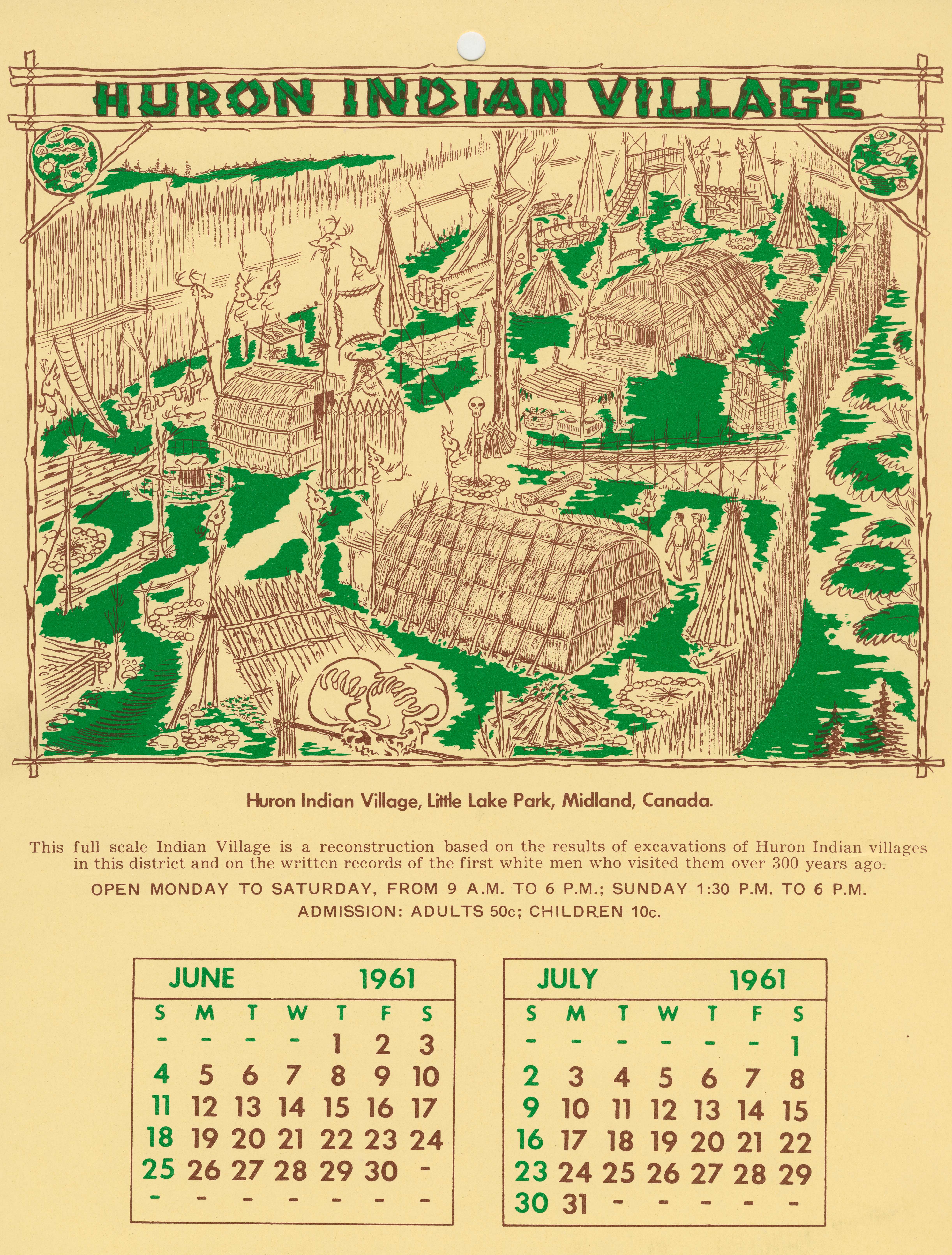 An advertising Calender For the Huron Indian Village c.1961.