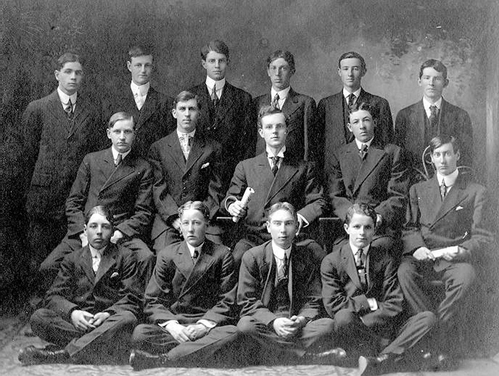 Clark Edwards is 10th from left, second row, facing slightly to the right, laughing hysterically.