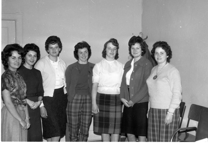 These top students were selected by a large Toronto firm last week for employment in their head office. They all received their training at the Midland Business College. School principal N. Schell said that demand for graduates has been the best in many years. Left to right: Simone Roi, Jeannette Verrier, Betty Phillips, Brenda Herr, Sharon Greenman, Anita Moreau and Shirley Sallows.