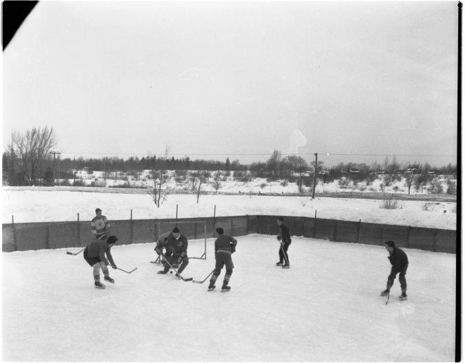 Some lads from Midland take on a Victoria Harbour team on the Harbour’s open-air rink.