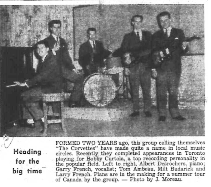 The five finalists in the Queen of Hearts contest are pictured here with Roxy theatre manager Wilf LaRose. The queen who will be chosen tomorrow night at the theatre, will receive many prizes from Midland merchants. Finalists are front row Pat Bate, Margaret Spicer and Bonnie Rourke. Standing beside Mr. LaRose are Sharon Dubeau at left and Betty Trace.