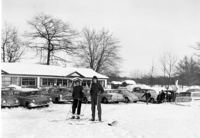 Residents of the Midland area felt they have all the snow and ice in North America on their doorsteps this winter, however, this provides fun for many, if not all. Jutta Bechmann and Dieter Bauer start out from the chalet for a spin up and down the hills of the Midland Ski Club.