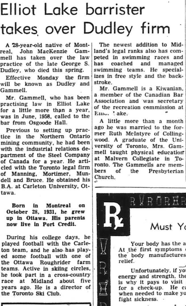 Builder’s trials for the S.S. Red Wing, carried out on Lake Ontario August 10, made a red letter day for William Silvey of Midland. Mr. Silvey is chief engineer on the new 730-foot long lake giant, built and launched at Port Weller Shipyard for Upper Lakes Shipping Ltd. At the conclusion of the trials, shipping and steamship inspection officials expressed their “complete satisfaction with the operation of the vessel and its equipment”. The Red Wing was officially handed over to the owners August 12 and proceeded to Sandusky, where she loaded 25,000 tons of coal for Hamilton. The big ship is 75 feet wide and has a moulded depth or 39 feet, three inches. (Always a classy looking ship, towed to Taiwan via Honolulu for scrapping in 1987.)