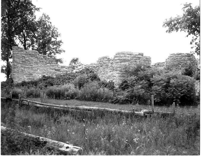 Not unlike the ruins of some old English castle or abbey, these old stone walls are all that’s left of the old mill at Tannerville. The area which once resounded to the daylong whine of the saw mill, now is one of the better summer cottage sub-divisions in this area. The happy shouts of children bathing in Georgian Bay have replaced the song of the saws.