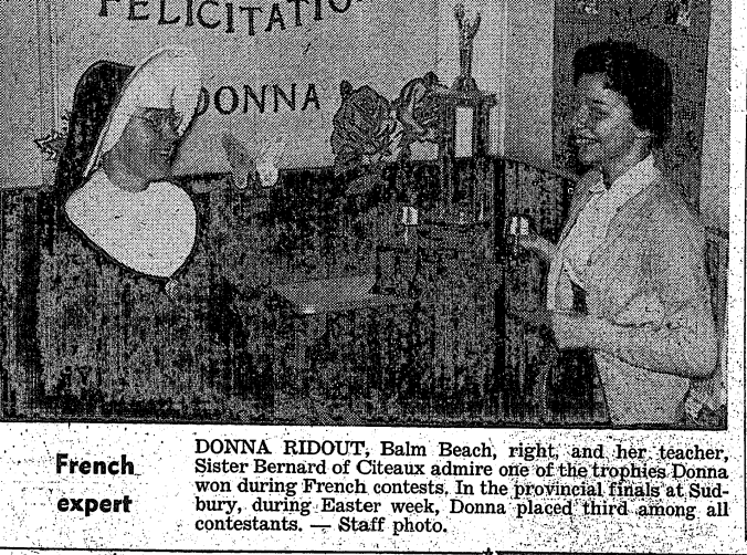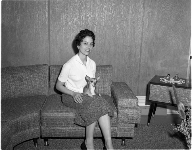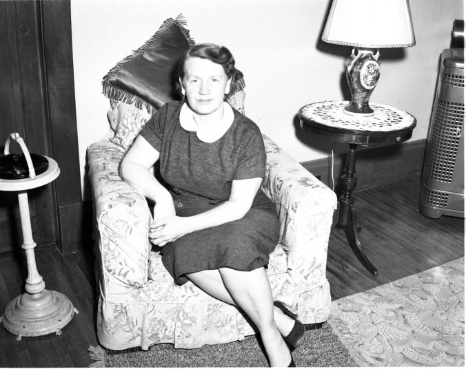 One of the prize winners in the Free Press Herald’s “Pick the Fashions” contest was Mrs. Ray Trew, seen here relaxing from her housewifely duties at her home, 189 Colborne Street, Midland. (“housewifely duties” not surprised that phrase didn’t catch on!)