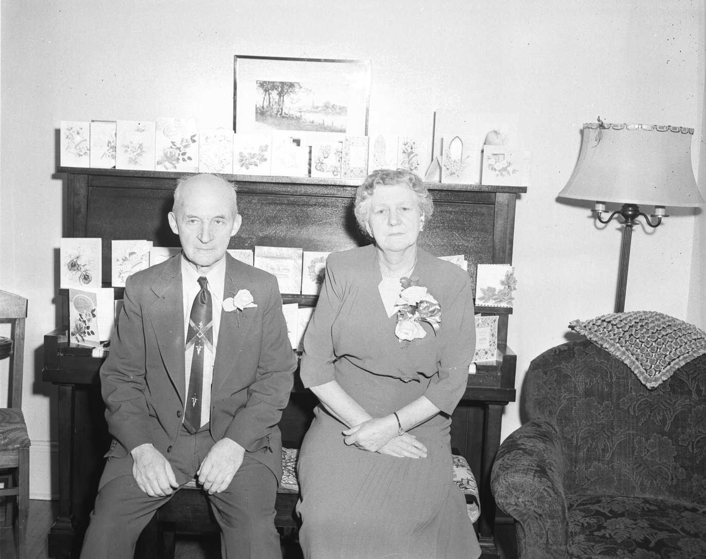 Charles Burton Edwards and his wife, Jessie May Smeltzer celebrate their 50th wedding anniversary. Charlie was born at Conc. 1 Tay Twp. near Wyebridge on December 21st, 1879. After attending Rankin’s School he worked on his father’s farm before going “steamboating” for five years, tiring of that he got a job at Gidley’s Boat Works in Penetang where he stayed for nine years. He then held a similar position at Monette Boat Works in Bracebridge for a few years, returning to Gidleys for another seven years. Leaving the boat business to became a building contractor in Toronto a trade he followed for fifteen years. During the war he served as a pattern maker at DeHavilland Aircraft working on the famed wooden Mosquitoe bombers, staying there until he retired in 1947.