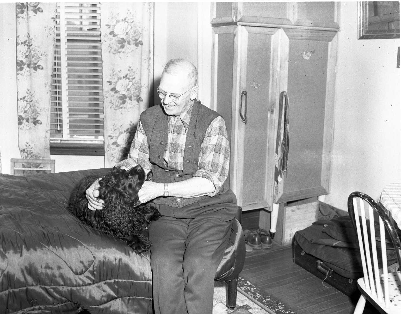 Caleb Truman and Toby live at 625 Bay Street. Known to many in Midland simply as “the man with the little black dog”. “He goes everywhere I do except to Knox Church on Sunday mornings,” smiles Caleb. Born in Derbyshire England in 1872, at 12 he became a pit pony driver in the coal mines, working from 6 AM till 3 PM for a shilling a day. After seven years in the mines he enlisted in the Royal Garrison Artillery and fought in the Boer War and the Indian border wars before returning to England as a Sergeant. He emigrated in 1905 and on the ship he met four other men bound for Canada, one being Arthur Marks from Midland. The entire group got jobs in a stave and lath mill at Edenville for 18 cents per hour, 10 hour days. His next job was pouring cement for the new Tiffin Elevator in Midland but that only lasted four months. After that he got a job at the Drummond smelter, Midland’s main industry at the time besides the saw mills, the smelter employed 200 men. There was a strike at the smelter, the men were asking for 3 eight hour shifts instead of the 13 hour night shift and 11 hour day shift. The company refused and the men eventually went back to the old system but the smelter business did not last long after that. Caleb and other employees found work at the International Nickel Company in Sudbury where he became a foreman in the sulphide division, a position he held for 26 years until his retirement in 1945 when he returned to Midland. Caleb married Annie Scott, daughter of Thomas Scott of Midland in 1907. Mrs. Truman died in 1944 and their only child Laura, died at a young age. Caleb belonged to the Sons of England, then one of Midland’s strongest lodges and the Masonic Order. His favourite hobby now is writing poetry, he has 75 compositions he hopes to publish some day.